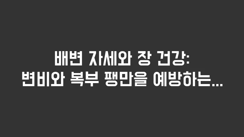🏠 배변 자세와 장 건강 핵심 관리 가이드