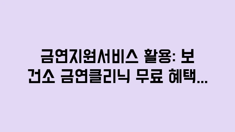 1. 보건소 금연클리닉: 6개월 밀착 관리와 무료 보조제 지원