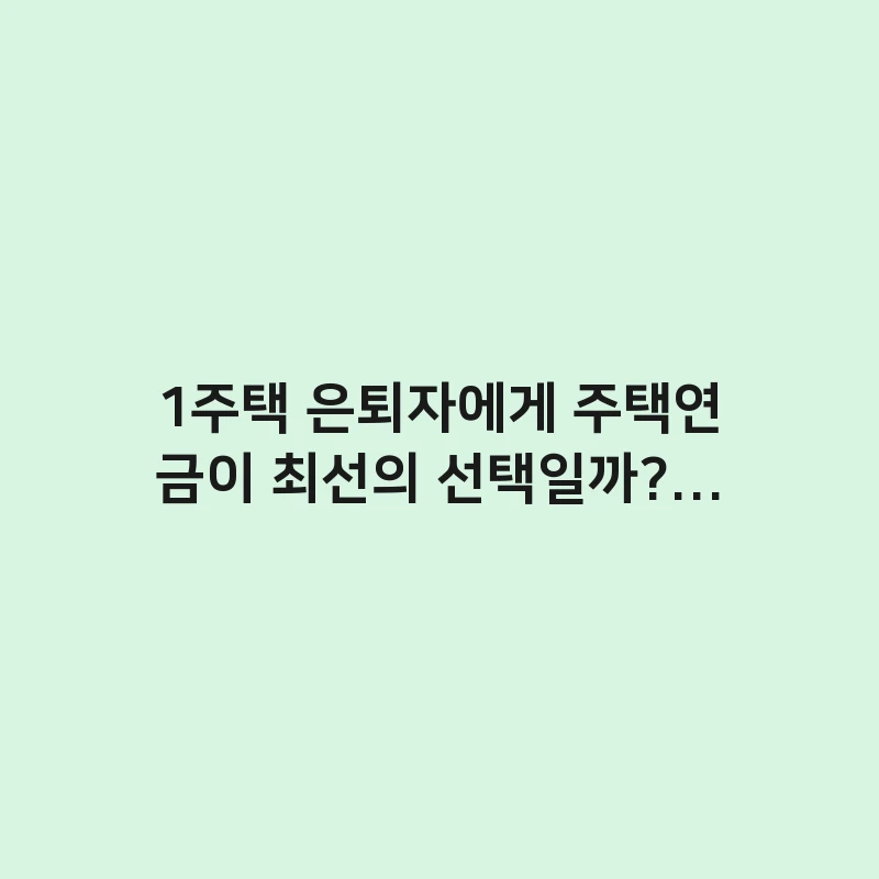하지만 주택연금이 모든 1주택 은퇴자에게 ‘최선의 선택’은 아닐 수 있습니다.
