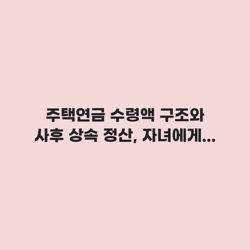 고지 문구: 본 글은 2025년 11월 기준으로 작성되었으며, 주택연금 수령액 산정 방식과 사후 정산에 대한 일반적인 정보를 제공합니다. 실제 월 지급액은 개인의 나이, 주택 가격, 금리 등에 따라 다르며, 상속 정산 절차는 관련 법규에 따릅니다. 가입 전 반드시 한국주택금융공사(HF)의 ‘예상연금조회’ 서비스를 이용하고 상담을 받으시기 바랍니다.