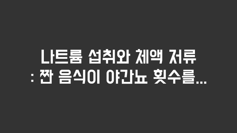 나트륨 섭취와 체액 저류 데이터를 분석해 보면 짠 음식은 결국 밤 시간대의 배뇨 폭탄이 됩니다. 잠들기 전 물을 조절해도 효과가 없었다면, 이제는 여러분의 소금통을 점검할 때입니다.