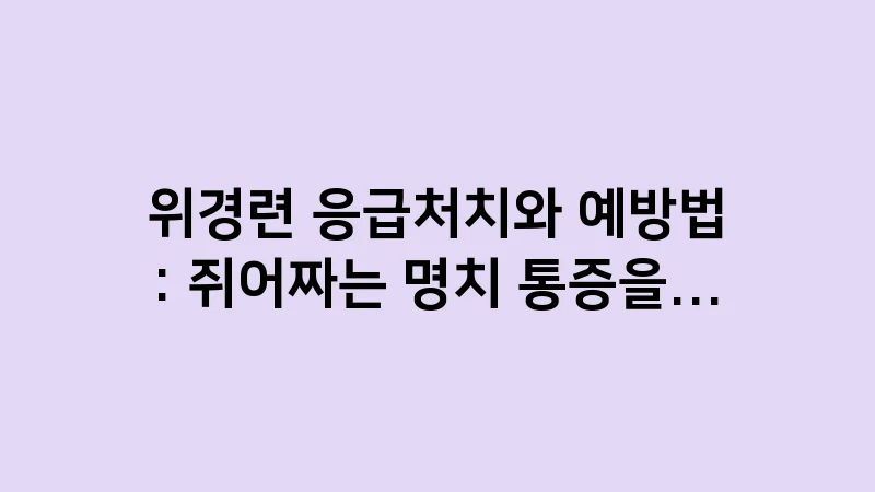 고지 문구: 본 글은 2026년 1월 기준으로 작성되었으며, 위경련 발생 시의 일반적인 응급처치 정보를 제공합니다. 통증이 극심하거나 구토, 발열 등이 동반되는 경우 즉시 응급실을 방문하여 전문적인 치료를 받아야 합니다.