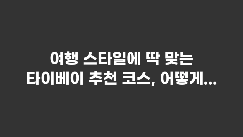 한눈에 보는 여행 스타일별 코스 설계 핵심 전략