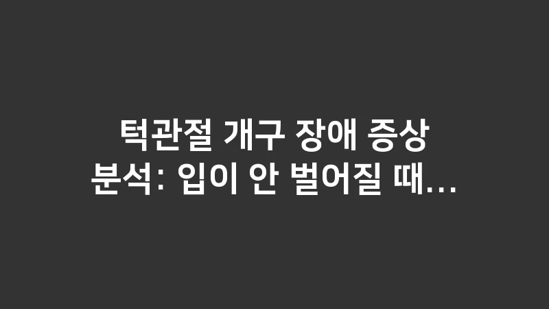 고지 문구: 본 글은 2026년 1월 기준으로 작성되었으며, 일반적인 정보를 바탕으로 합니다. 갑작스러운 개구 장애 시 무리한 시도는 영구적인 손상을 초래할 수 있으므로, 반드시 가까운 구강내과 전문의를 찾아 정밀 진단을 받으시기 바랍니다.