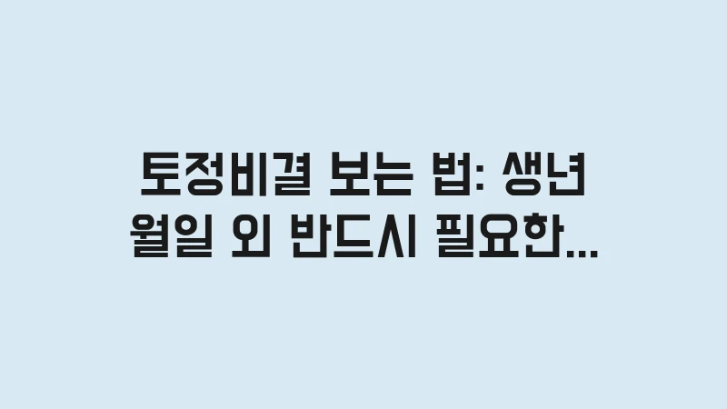 이 글에서는 토정비결 보는 법 전문가가 알려주는 생년월일 외 필수 정보 3가지를 구체적으로 제시합니다. 이 핵심 정보를 꼼꼼하게 챙겨야 무료 서비스의 결과를 신뢰할 수 있으며, 이 결과를 2026년 목표 설정의 현실적인 지표로 활용할 수 있습니다. 운세의 정확도를 200% 높이는 비법을 확인하시기 바랍니다.