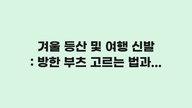 | 가죽 방한 등산화 | 고어텍스 내피+기모 안감 | 안정성 높음, 전문 산행용 | 무겁고 가격이 비쌈 |